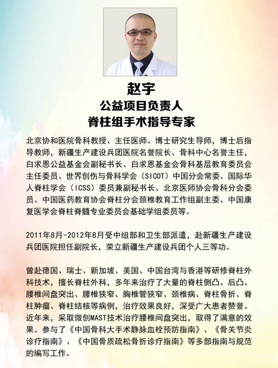 3月17日,白求恩公益基金會副秘書長、公益行項目負責人、脊柱組手術指導專家、北京協和醫院趙宇教授赴包鋼三醫院親臨指導手術。