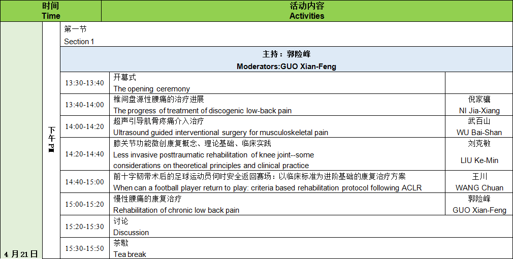 骨科康復治療是骨科疾病治療不可或缺的一部分,無論患者是否接受手術,正確、有效的康復治療都將幫助患者最大程度的恢復功能。本次論壇圍繞腰痛治療、運動損傷康復、關節僵硬的康復治療三個主題來組織學術活動。講者包括國內一流的疼痛治療專家、康復專家、美籍運動康復專家以及積水潭醫院康復科具有多年康復經驗的物理治療師。多學科專家的不同視角、國際前沿的康復技術、多年經驗孕育出的臨床感悟,這個下午,我們共同探討、互相學習,一起將骨科康復技術普及、提高。