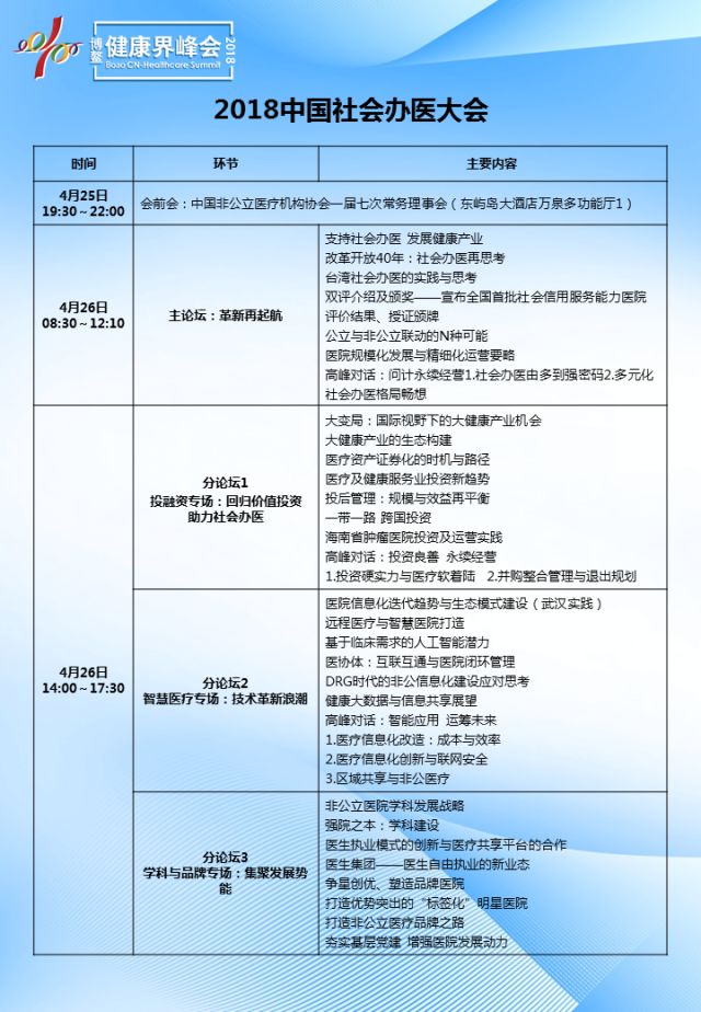 繼較具盛譽的2018博鰲亞洲論壇之后,第六屆健康界峰會將由健康界傳媒、中國研究型醫院學會、海南省衛生計生委、瓊海市人民政府共襄盛舉,以“博鰲·健康界峰會”的全新面貌,于2018年4月25日-28日在海南博鰲盛大召開!